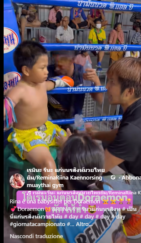 * QUI il testo in italiano di un articolo che tratta “L’allenamento della Muhai Thai nei bambini”. Raccomanda tantissimo di “seguire” i bambini passo dopo passo, ma non si fa cenno all’orrendo spettacolo offerto dalla disciplina marziale, tanto meno a quello che succede nel paese dove quest’arte è nata.